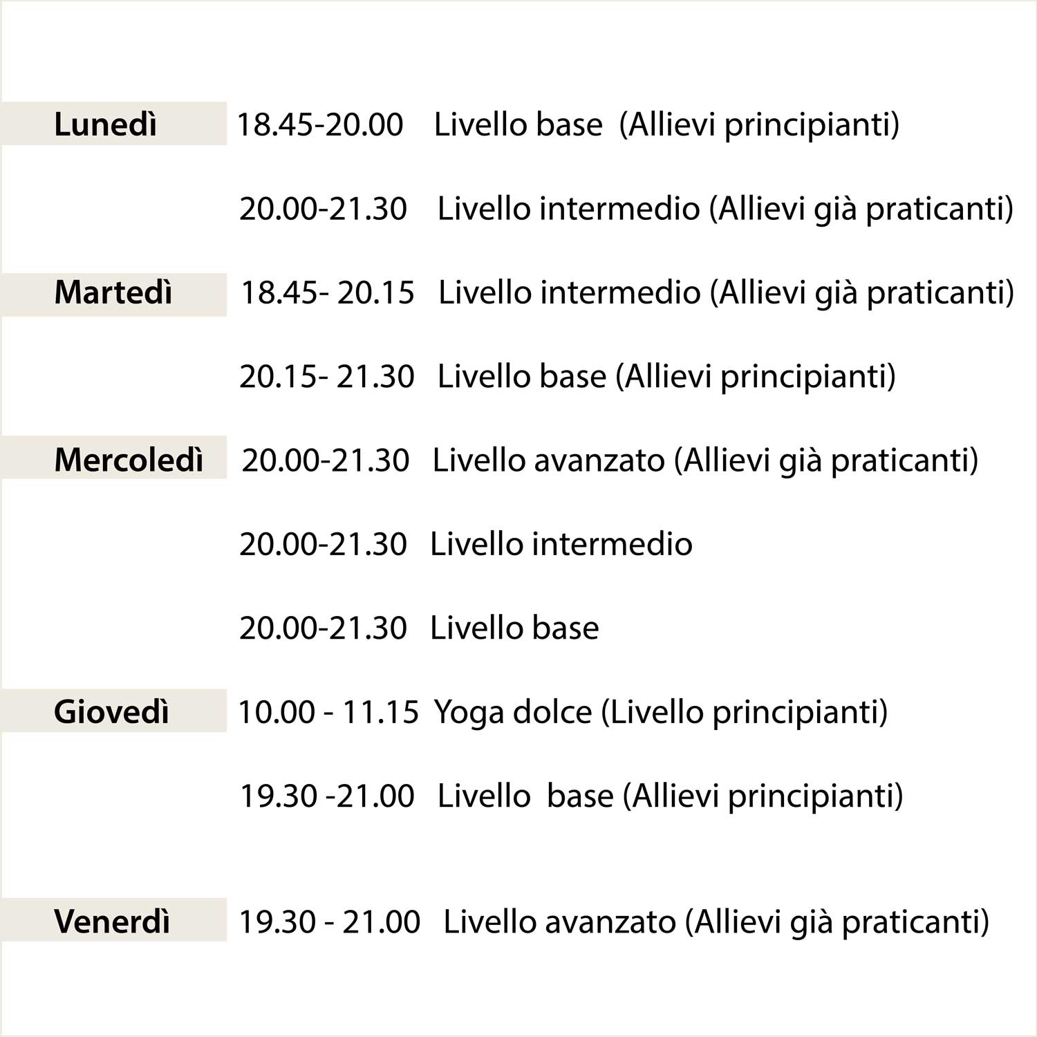 ORARI CORSI DI YOGA